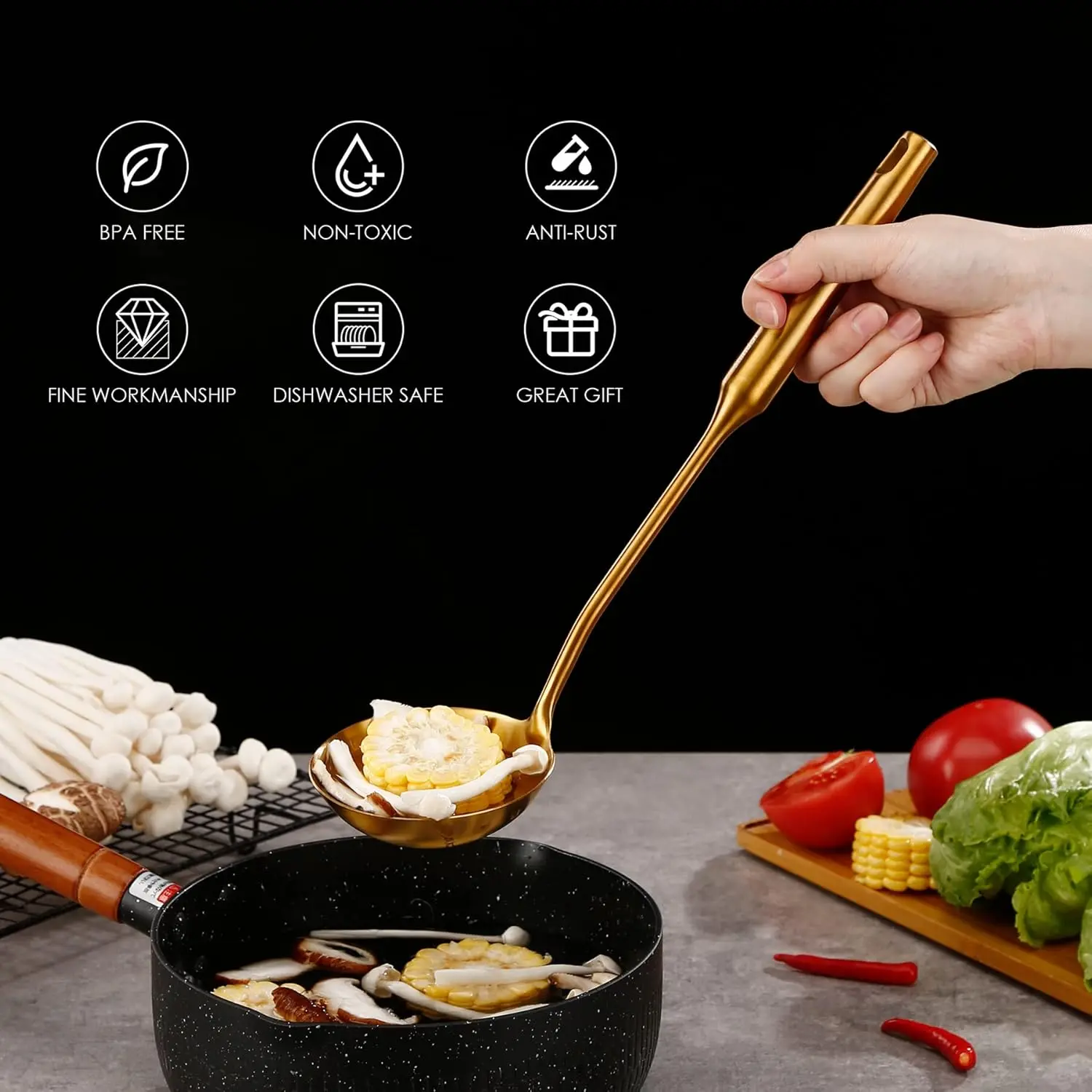 KITCHENWARE SET WITH STAND GOLD 7PC